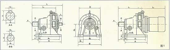 B--擺線針輪減速機(jī) w-- 臥式結(jié)構(gòu)