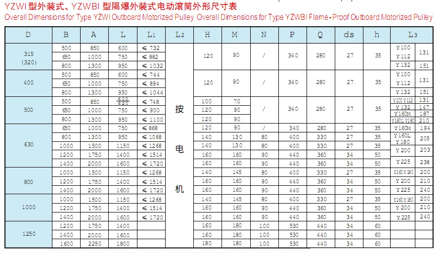 該產(chǎn)品是供各種固定式帶式輸送機(jī)、斗式提升機(jī)、卷?yè)P(yáng)機(jī)等配套的新型驅(qū)動(dòng)裝置。其內(nèi)部采用行星擺線(xiàn)減速機(jī)構(gòu),使電機(jī)外露與滾筒直聯(lián),具有承載能力大、過(guò)載能力強(qiáng)、傳動(dòng)平穩(wěn)、噪音低、壽命長(zhǎng),使用維修方便,操作安全可靠等優(yōu)點(diǎn)。可滿(mǎn)足各種逆止、包膠等要求。隔爆外裝式電動(dòng)滾筒其隔爆標(biāo)志位dl、dllAT4。dl適合于有甲烷或煤塵礦井中,dllAT4適合于有I、IIA級(jí)T2~T4組爆炸危險(xiǎn)性混合物存在的場(chǎng)所,dllBT4適用于有I、IIA、IIB級(jí)T2~T4組爆炸危險(xiǎn)性混合物存在的場(chǎng)所。