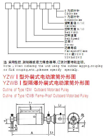 YZW型外裝式 YZWB型隔爆外裝式電動(dòng)滾筒