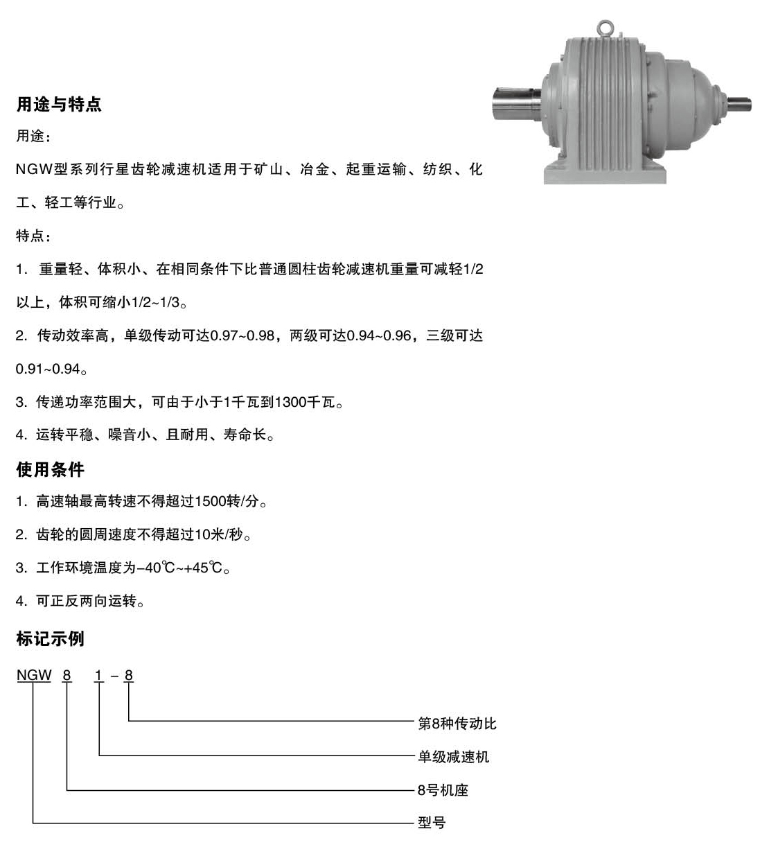 NGW型系列行星齒輪增速機適用于礦山、冶金、起重運輸、紡織、化工、輕工等行業(yè)。